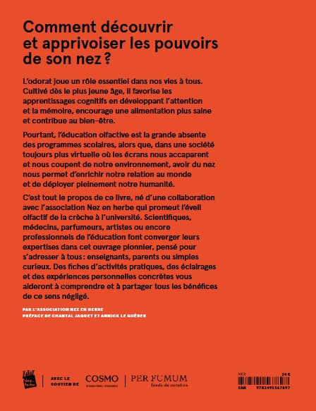 Edité par NEZ dans la collection Nez culture dirigée par Jeanne Doré (164 pages – EAN : 9782491567897) cet ouvrage est le premier livre d’éducation olfactive permettant à de nombreux publics (enseignants, parents, accompagnants, simples curieux) d’éveiller l’odorat des enfants (et des plus grands !). Il a été réalisé avec le soutien du Fonds de dotation Per Fumum et de Cosmo International Fragrances.